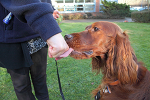 - Give them a treat from the other hand when they successfully manage to leave the treat in your open hand.